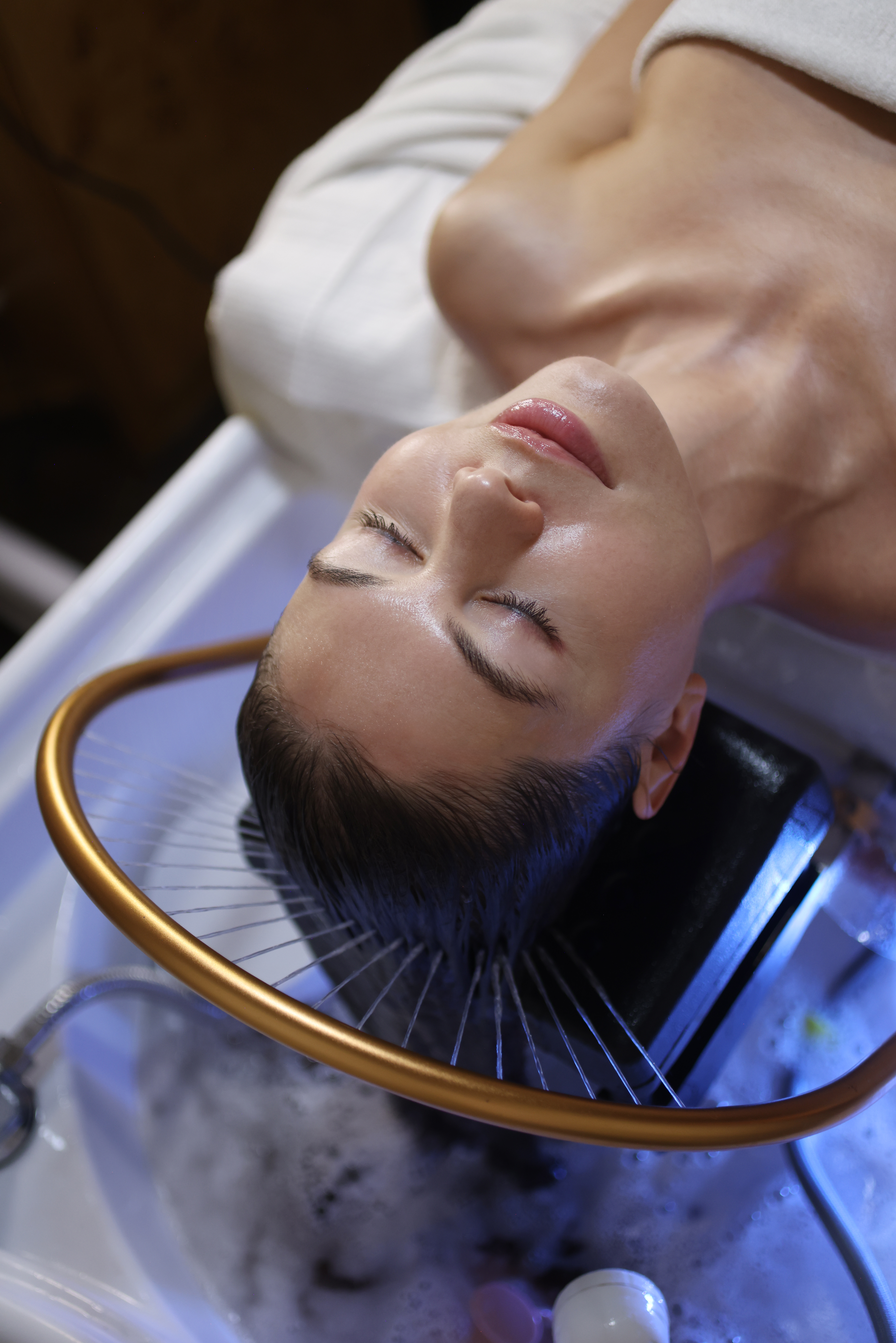 This is where head spas come in — reaching a level of care home routines cannot. Through advanced scalp diagnostics, exfoliation, micro-circulation massage, herbal treatments, micro-current and LED therapy, we can deeply cleanse and reset the scalp environment, much like an expertly performed facial detoxifies and rebalances the skin.